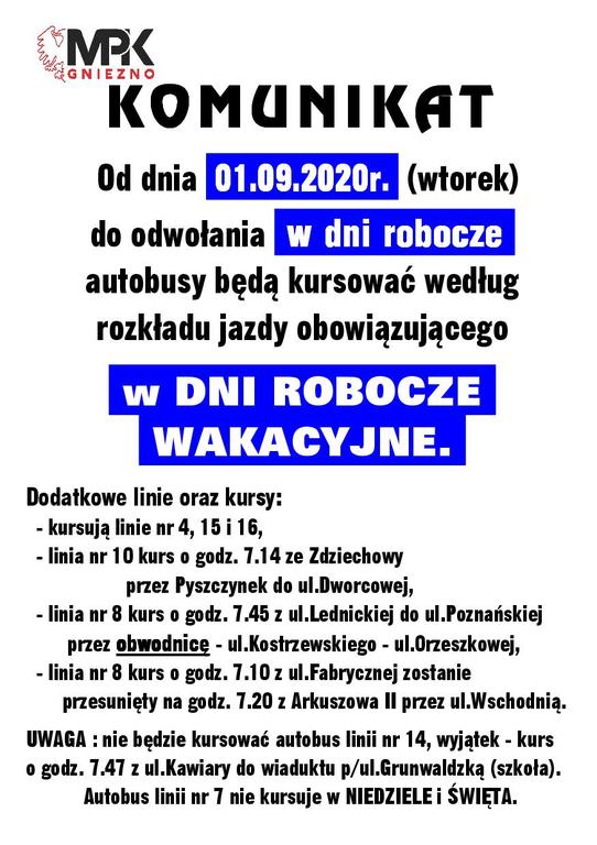 Komunikat MPK Opublikowano: 28 sierpnia 2020 20:58 Kategoria: Aktualności Wydrukuj Wyświetleń: 160 Zobacz również 50. Międzynarodowy Turniej Szachowy o Puchar...Komunikat PWiK Obchody rocznicy wybuchu Powstania...Dyskusyjny spacer z książką „Złap deszcz” - 4 stycznia ponownie rusza nabór... 4 stycznia rusza kolejna edycja programu „Lepsza...