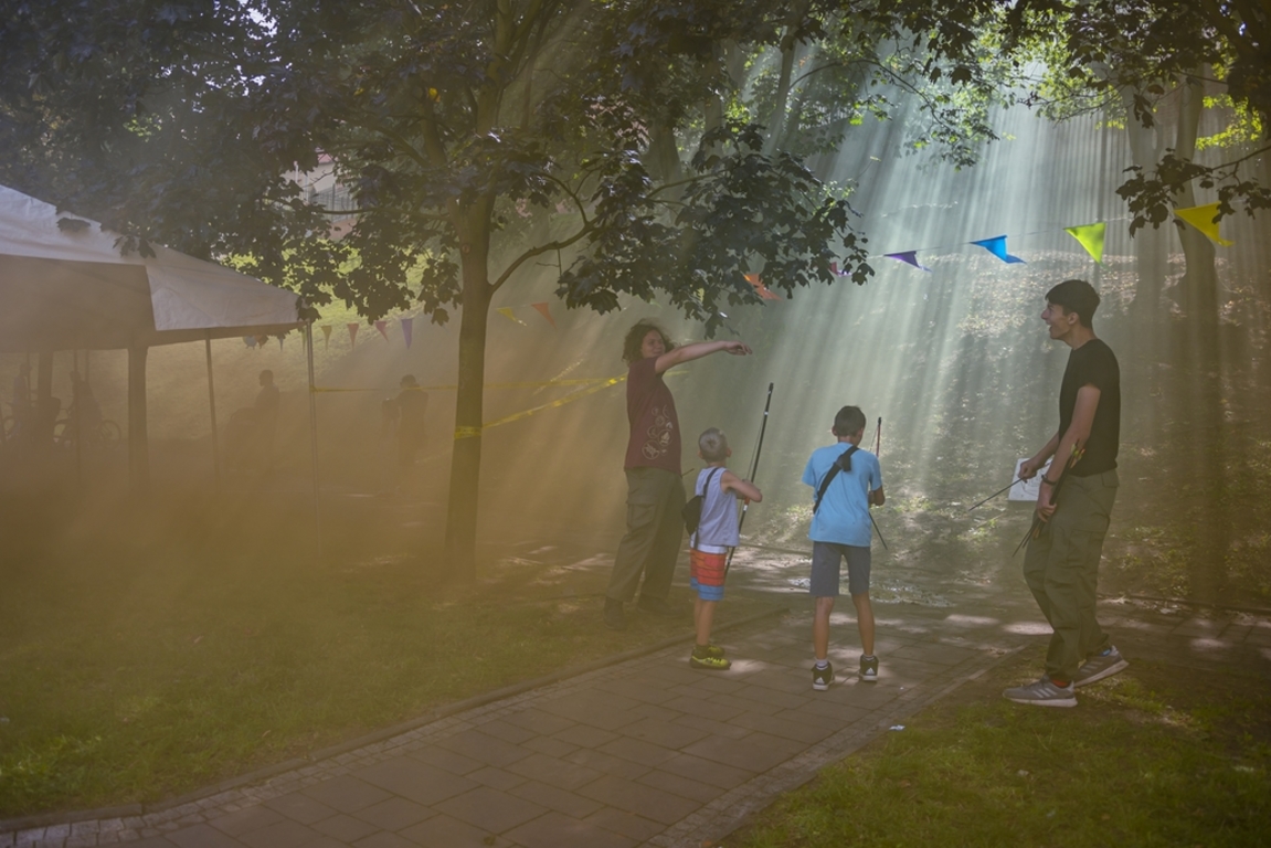 Można było także poznać i posłuchać na żywo fantastycznych pisarek literatury dziecięcej. Odbyły się spotkania autorskie z Elizą Piotrowską, Agnieszką Gadzińską (oraz całą ekipą Myszki Marcysi) i Justyną Bednarek, autorką między innymi „Niesamowitych przygód dziesięciu skarpetek”, które są… lekturą szkolną – bardzo lubianą! Dlatego właśnie skarpetki dumnie powiewały nad Doliną Pojednania.