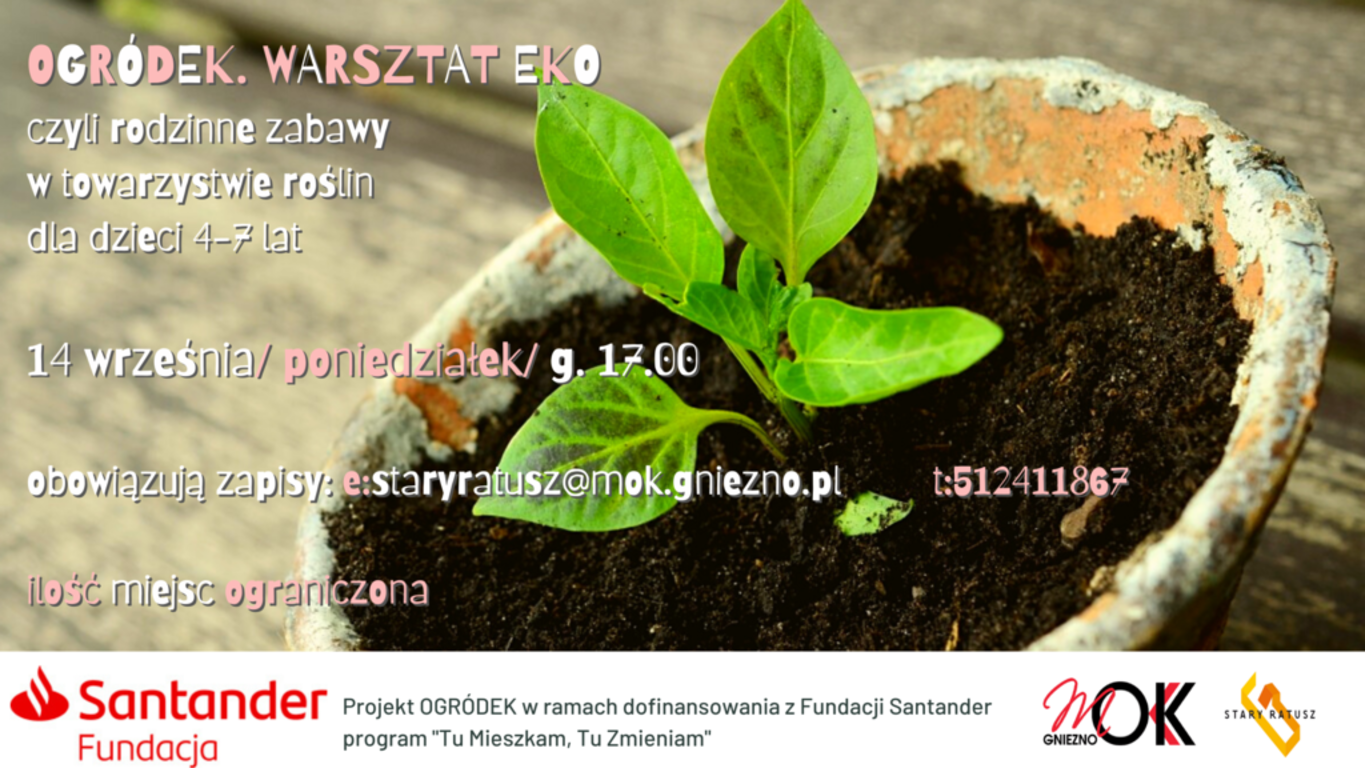 Warsztat odbywa się w ramach projektu „Ogródek" dofinansowanego przez Fundację Santander Bank Polska, w konkursie „Tu Mieszkam, Tu Zmieniam EKO". Kolejne spotkanie w ramach tego samego projektu, skierowane już do starszych dzieciaków (w wieku 8-15 lat) planowane jest na ratuszowym dziedzińcu 21 i 28 września.