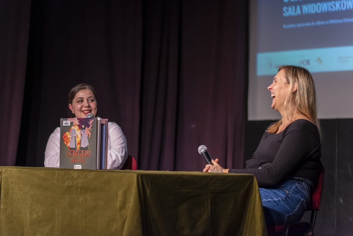aangażowana twórczość Frej pięknie wybrzmiała za sprawą osobistej historii jej drogi twórczej. Było nie tylko szczerze ale także optymistycznie i inspirująco. Frej, niczym bohaterki jej komiksu, sprawiła, że uczestnicy spotkania poczuli się zmotywowani do kobiecej solidarności i sprawczości. Rozmowę poprowadziła Katarzyna Mikołajczewska-Modrzejewska, w gościnnych progach Miejskiego Ośrodka Kultury w Gnieźnie.