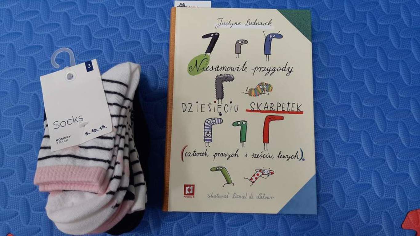 Pod czujnym okiem koordynatorek Iwony Gronostaj, Magdaleny Splis, Wioletty Mazurek, Pauliny Młodoszewskiej, Danuty Selbirak, dzieci przedszkolne podczas warsztatów „Skarpetka na tropie” zapoznały się z książką „Niesamowite przygody dziesięciu skarpetek” Justyny Bednarek. Najmłodsi, w ramach akcji Cała Polska Czyta Dzieciom, wysłuchali głośno czytanego rozdziału: „Opowieść o skarpetce pierwszej, która wygrała casting i zdobyła role w popularnym serialu”. Następnie dzieci zamieniły się w tropicieli i poszukiwały ukrytych skarpetek. Wykorzystując wyobraźnię wykonały kolorowe skarpety według własnego pomysłu. Warsztaty zostały wzbogacone przez autorski materiał pisarki.