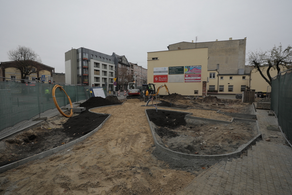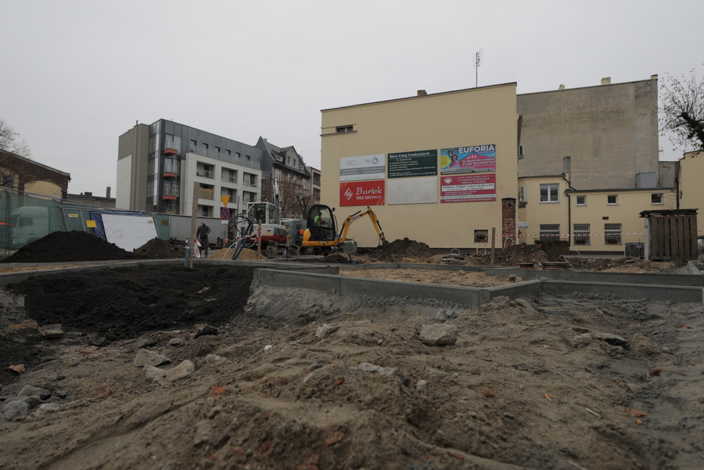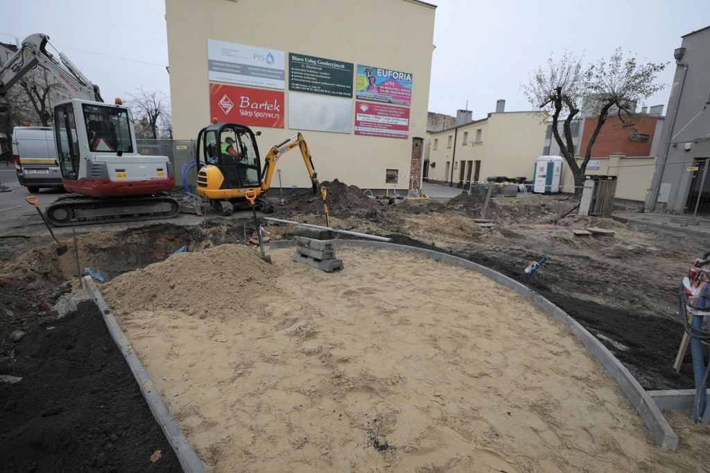 Trwają prace na terenie znajdującym się u zbiegu ulic Lecha i Chrobrego. Zamiast nieuregulowanego, „dzikiego” parkingu już wkrótce będzie tam zielony skwer z ławkami.