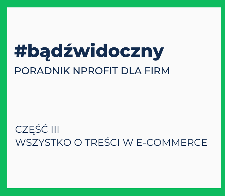 Agencja NPROFIT, prowadząca ogólnopolską kampanię #bądźwidoczny kierowaną do przedsiębiorców, opublikowała już III część bezpłatnego poradnika. W całości została poświęcona treści w e-commerce. Zespół działu SEO Agencji NPROFIT przygotowując tę ostatnią część poradnika skupił się na treściach dla e-commerce. Jednak trzeba podkreślić, że wiele ma zastosowanie również w przypadku stron usługowych czy informacyjnych.