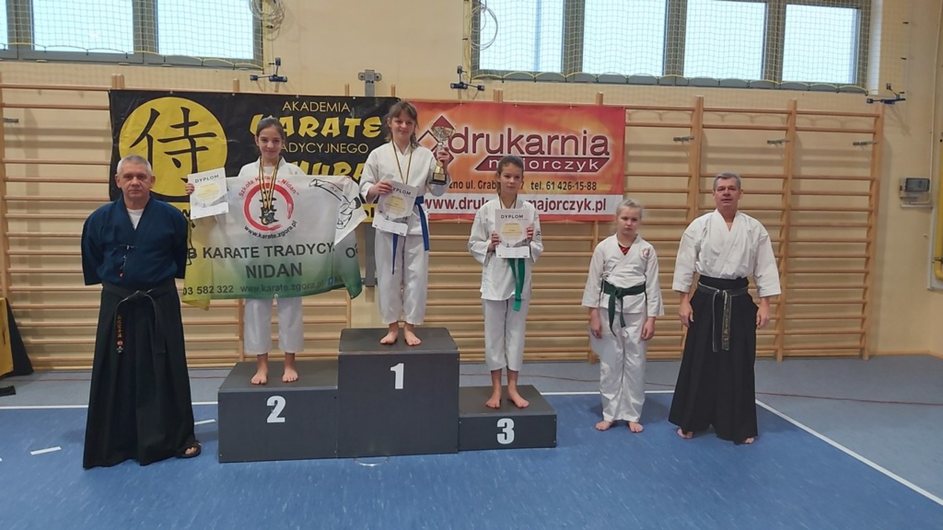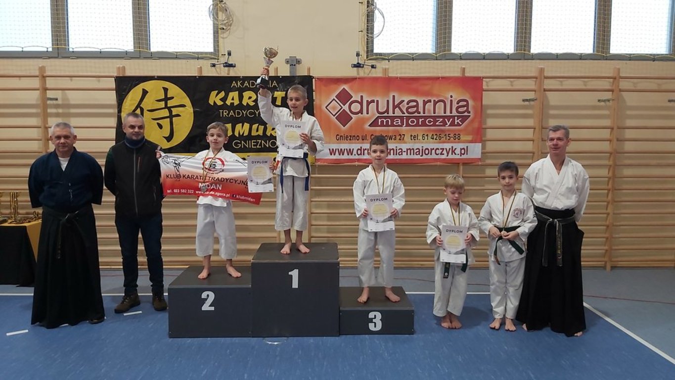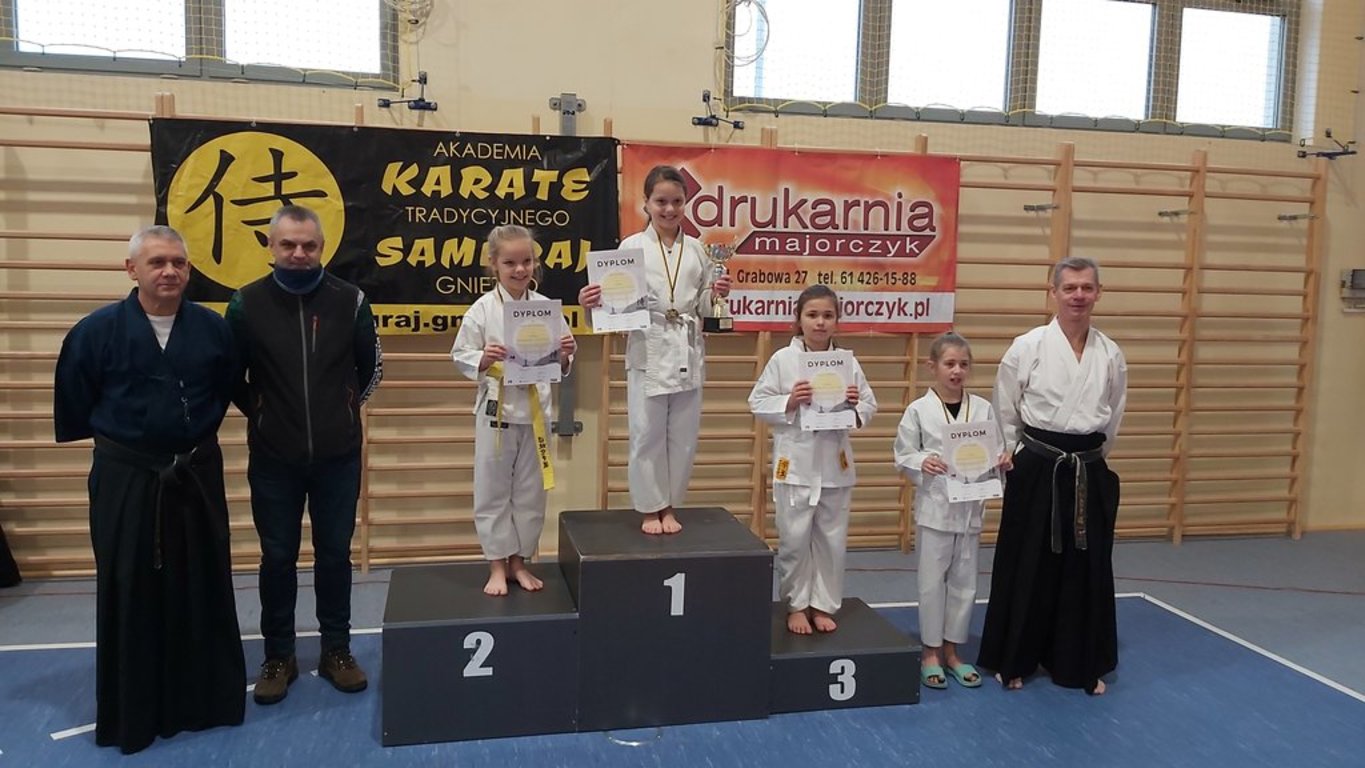 Samuraje zarówno z sekcji Gniezno, jak i sekcji Trzemeszno, nie zawiedli. W Gnieźnie pozostało 5 złotych, 3 srebrne i 3 brązowe medale. Ponadto nasi karatecy wywalczyli 5 czwartych miejsc, co jest również dużym osiągnięciem. Złote medale zdobyli: Sonia Nowicka, Wiktoria Nowicka, Wiktoria Łuczyńska (2) i Kacper Zając. Srebro przypadło w udziale: Nadii Wojciechowskiej, Aleksandrze Arczewskiej i Natalii Szubie. Na trzecim stopniu podium stawali: Sonia Nowicka, Marcelina Ciesielska i Kacper Zając. Wysokie, 4 miejsca, za co również należą się ogromne gratulacje, wywalczyli: Laura Bombel, Marlena Woźniak, Dominika Oleksy, Maja Barczak i Nikodem Lisiecki.