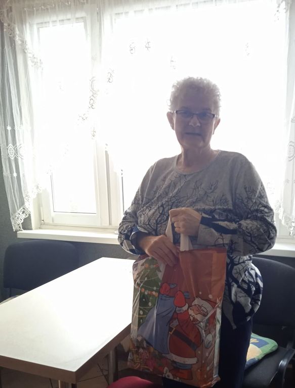 Paczki, przekazane przez Przewodniczącą Zofię Komosińską wywołały wielką radość i wzruszenie, a seniorzy prosili, by pięknie podziękować najmłodszym za laurki.