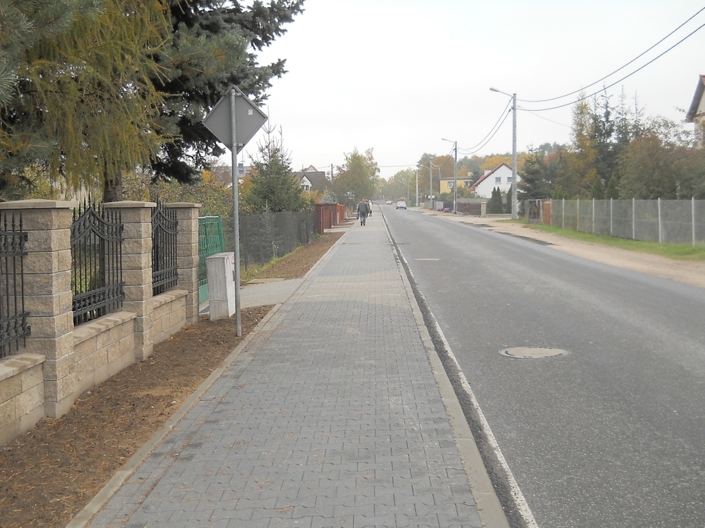 Budowa chodnika na ul. Leśnej na odcinku 398 metrów obejmowała wykonanie nawierzchni chodnika, nawierzchni zjazdów i odwodnienia - jezdni poprzez studzienki ściekowe, chodników za pomocą ścieku z kostki brukowej betonowej i wpustów ściekowych oraz odwodnienia liniowego do drenaży rozsączających. Wartość zadania wyniosła 243 878,29 złotych brutto.Roboty rozpoczęto 19 sierpnia 2015 roku, a zakończono 30 września 2015 roku.