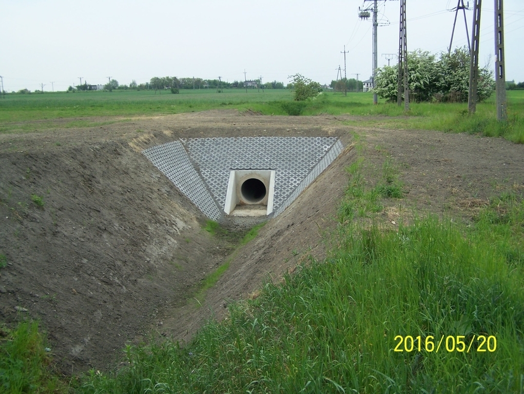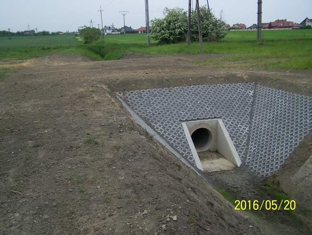 W ramach tego zadania ułożono trzy przepusty drogowe na istniejących rowach melioracyjnych zlokalizowanych w projektowanych pasach drogowych dróg gminnych na terenie przeznaczonym pod budownictwo wielorodzinne i jednorodzinne. Długość przepustów wynosi odpowiednio 20,3 m, 15,3 m i 20,3 m.