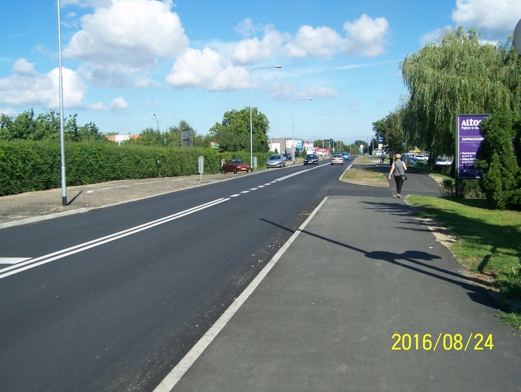 W ramach zrealizowanej inwestycji przebudowany został istniejący przepust na rowie odwadniającym, odbudowano częściowo nawierzchnię chodników, umocniono pobocza drogi, wykonano dodatkowe przejście dla pieszych i schody prowadzące do jednego istniejącego przejścia.